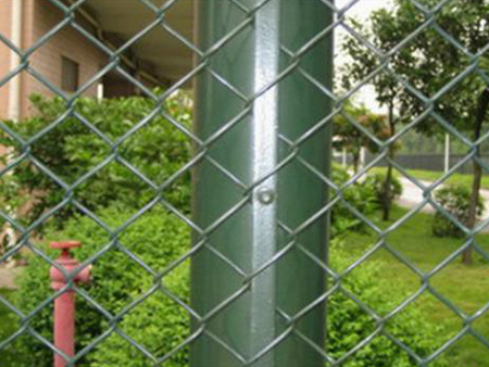 采用扁鐵固定式圍網是運動場圍網的一種,一般主要是現場制作圍網采用的方法,先把框架焊接組裝好然后噴漆,最后再把圍網展開鋪平四個邊穿入扁鐵用自攻絲定裝在框架上,它和工廠定制圍網最大的區別就是圍網和框架固定方式不同。