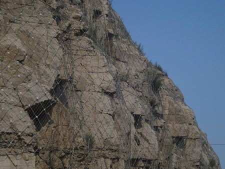 產品特性:作用原理上類似于噴錨和土釘墻等面層護坡體系,但因其柔性特征能使系統將局部集中荷載向四周均材質:鋼絲繩網、普通鋼絲格柵(常稱鐵絲格柵)和TECCO高強度鋼絲格柵 勻傳遞以 充分發揮整個系統的防護能力,即局部受載,整體作用,從而使系統能承受較大的荷載并降低單根錨桿的錨固力要求 。