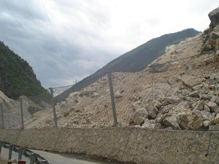 系統(tǒng)的柔性和攔截強度足以吸收和分散傳遞預計的落石沖擊動能,消能環(huán)的設計和采用使系統(tǒng)的抗沖擊能力得到進一步提高.與剛性攔截和砌漿擋墻相比較,改變了原有施工工藝,使工期和資金得到減少。