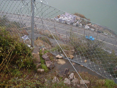 被動防護網的柔性和攔截強度足以吸收和分散傳遞500KJ以內的落石沖擊動能,消能環(huán)的設計和采用使系統(tǒng)的抗沖擊能力得到進一步提高SNS被動防護網與剛性攔截和砌漿擋墻相比較,改變了原有施工工藝,使工期和資金得到減少。