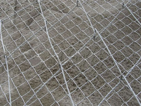 絞索網由高強度防腐鋼絲成索后編制,菱形網孔內切圓直徑250mm,網片標準規格10x3.5m;